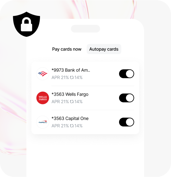 Build a personalized payoff plan for each of your cards in just a few taps. Easily pay recommended amounts to pay balances off faster. Graph your monthly progress and debt-related goals.